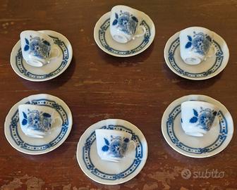 Servizio composto da 6 tazze con sottopiatto Richard Ginori modello antico Doccia Taormina rose blu. Ottime condizioni ,mai usato Diametro piatto 13,7 cm , Altezza tazzina 5 cm