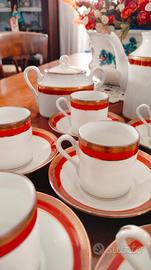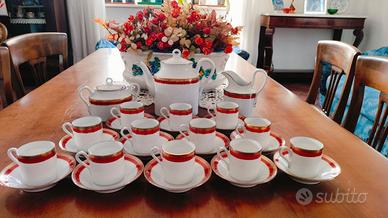 vendo servizio da caffè collezione Palermo Rosso (1984l di Ginori. Mai usato, in ottime condizioni, composto da 15 pezzi totali di cui 12 tazzine con piattino + 1 zuccheriera con coperchio+ 1 lattiera + 1 teiera con coperchio