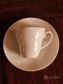 Servizio composto da 6 tazze con piattino Rosenthal disegnato da Bjorn Wiinblad con delicati motivi ovali, linee e punti leggermente in rilievo di una bellezza mozzafiato e curati nei dettagli. Il designer Biörn Wiinblad è stato un pittore, designer e artista danese specializzato in ceramica tessuti e grafica. Nel 1957 fu nominato capo designer per Rosenthal. Fu nominato Uomo dell'Anno a New York nel 1985 e gli fu conferito il Premio Culturale dalla Fondazione Americano-Scandinava nel 1995. I Victoria and Albert Museum di Londra , il MOMA e il Museo Nazionale di Stoccolma ospitano opere di Wiinblad. || motivo "Romance" è stato in produzione dal 1961 e interrotto nel 2005,