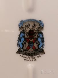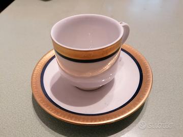 #idea regalo# Servizio da caffè vintage in porcellana bianco e blu con bordatura in oro composto da 2 tazzine, 2 piattini, zuccheriera con coperchio e vassoio. Marca Aschaffenburg Bavaria