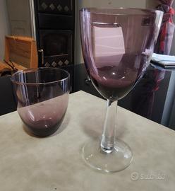 Servizio di bicchieri e calici "L'oca nera", eleganti, raffinati e nuovi ancora con etichette attaccate. 8 bicchieri e 7 Calici di colore viola trasparenti. Il servizio è nuovo (regalo di nozze) e mai utilizzato. Sui bicchieri e sui calici ancora è presente l'etichetta originale della marca (come.si può vedere in foto).
