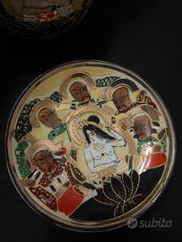 Servizio originale caffè/tè in porcellana giapponese Satsuma dipinto con dettagli in rilievo.