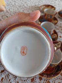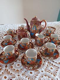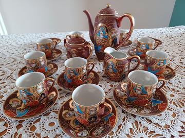 Servizio da caffè cinese anni 50. La porcellana è finissima e di estremo pregio. Sul fondo delle tazzine si intravede un volto femminile in controluce. Il servizio è così composto: 1 caffettiera 1 zuccheriera 1 lettiera 12 piattini 10 tazzine (di cui 1 è venata e scheggiata, adatta all'esposizione ma non all'utilizzo. La spedizione non è consigliata considerata la delicatezza del servizio.