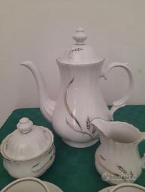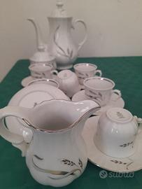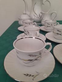 Vendo splendido e originale servizio completo da 6 da caffè ☕️ con 6 tazzine, 6 piattini, 1 caffettiera, 1 zucchieriera, 1 lattiera di fine porcellana BAVARIA Wunsiedel disegno Ginori. Decoro con filo argentato e spighe . Euro 40 con ritiro o spedizione spese escluse