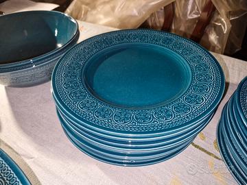 Buongiorno, come da foto vendo causa trasloco un servizio completo di piatti colore verde con bordo decorato, così composto: