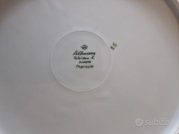 Elegante servizio di piatti anni 50 perfettamente conservato, con un delicato motivo floreale e bordo dorato, composto da 6 piatti fondi, 12 piatti piani e 6 piatti da dessert, due piattini piccoli ovali, 2 piatti grandi di portata (uno fondo e l'altro piano). Il tutto per 170 euro. Realizzati in porcellana Seltmann Weiden Bavaria Therese, di alta qualità