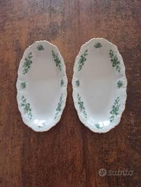 Elegante servizio di piatti anni 50 perfettamente conservato, con un delicato motivo floreale e bordo dorato, composto da 6 piatti fondi, 12 piatti piani e 6 piatti da dessert, due piattini piccoli ovali, 1 piatto grande di portata (fondo). Il tutto per 150 euro. Realizzati in porcellana Seltmann Weiden Bavaria Therese, di alta qualità. In regalo un piatto grande di portata (piano)