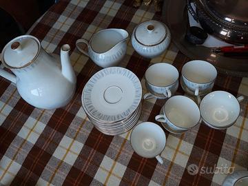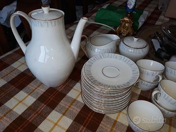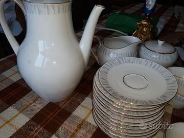 SERVIZIO COORDINATO da TE' e CAFFE' a righe grigie Vendo servizio di tazze da tè e caffè in porcellana Seltmann Wildew Bavaria dei primi 1900 – composto da: nr. 1 teiera con coperchio nr. 1 limoniera nr. 1 zuccheriera con coperchio nr. 12 tazze da te con relativo piattino nr. 1 bricco caffè con coperchio nr. 1 lattiera nr. 1 zuccheriera con coperchio nr. 12 tazzine da caffè con relativo piattino (l'opacità è dovuta dall'inutilizzo da anni - basta lavarli perchè riprendano la loro brillantezza - sempre lavati a mano) - euro 120,00