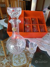 Cristal D’arques vintage, nuovo in scatola, set di 1 decanter in cristallo taglio Masquerade in cristallo al 24% taglio piombo con tappo in vetro, 6 tumbler per liquori. Parigi