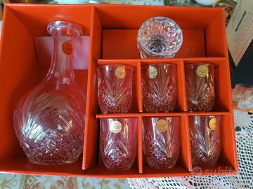 Materiali: Cristallo al piombo con taglio trasparente, Taglio a ventaglio incrociato, Set decanter e bicchieri da liquore