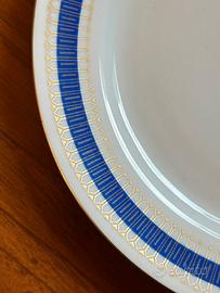 Servizio da 12 persone in porcellana con greca blu e oro. Completo di piatto piano, fondo, piattino per antipasto, piatto da portata tondo, piatto ovale, zuppiera Diametro piatto piano 24cm Diametro piatto da portata 32cm Ottime condizioni, mai usato. 50€ Ritirabile di persona in zona Porta Vittoria, Milano