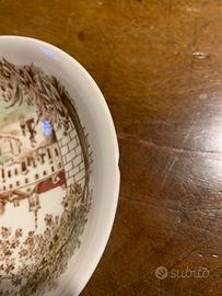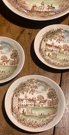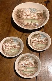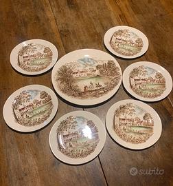 Servizio da 6 per dessert e macedonia, prodotto dalla manifattura inglese Johnson Bros, composto da 6 piattini di diametro 19 cm, piatto da portata diametro 26 cm, ciotola grande da 24 cm e 6 ciotoline di diametro 14 cm, in totale 14 pezzi. Una delle ciotoline ha una piccola sbeccatura come da foto.