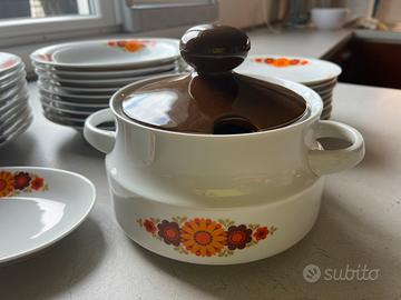 Servizio in porcellana composto da 9 piatti fondi, 9 piani e 9 piattino frutta, 1 zuppiera con coperchio, 2 piatti tondi da portata + 2 ovali