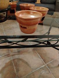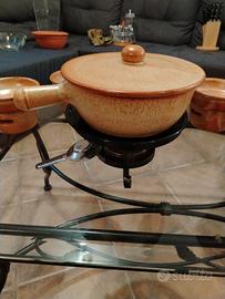 Vendo servizio da bagna cauda composto da 6 fondine più pentola con alzata per tenuta a caldo tutto in terracotta. Perfette condizioni