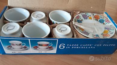 Bellissimo servizio da caffè vintage, in porcellana, composto da 6 tazzine con i rispettivi piattini. Le tazzine sono decorate con motivi floreali multicolori, sui toni del bianco e del colorato. Sono perfette per un tocco di stile retrò nella tua cucina! - 6 tazzine caffè - 6 piattini - Motivi floreali