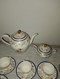 Servizio da caffè vintage - Seltmann weiden BAVARIA decoro LIANE, anni 50/60. Porcellana fine con decoro floreale, bordo blu e dettagli in oro. Il set comprende: caffettiera, zuccheriera, lattiera, 11 tazzine e 12 piattini. Condizioni ottime, senza crepe o sbeccature.