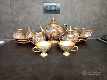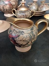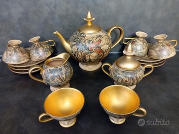 Elegante servizio da caffè in porcellana, stile Giotto. - Decorazioni policrome con scene. - Dettagli e finiture in oro. fatto a mano ,fiorentino.
