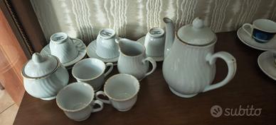 Servizio da caffè in porcellana bianca con oro zecchino – vintage anni ’60/’70 Vendo elegante servizio da caffè in porcellana bianca con bordo rifinito in oro zecchino, risalente agli anni ’60/’70. Il servizio comprende: - 1 caffettiera - 1 zuccheriera con coperchio - 1 lattiera - Tazze con piattini Caratteristiche: - Linea classica ed elegante anni 60 - Finiture dorate in oro zecchino - Ottimo stato di conservazione Contattami per info o altre foto.