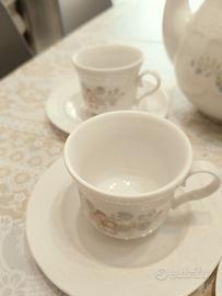 Con 5 tazze con piattini 1 caffetteria 1 porta zucchero in ceramica bianca con fiori vintage