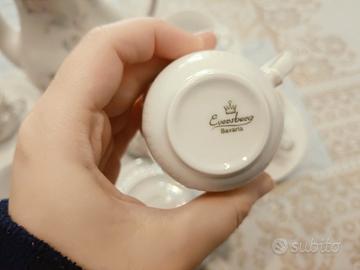 Con 5 tazze con piattini 1 caffetteria 1 porta zucchero in ceramica bianca con fiori vintage