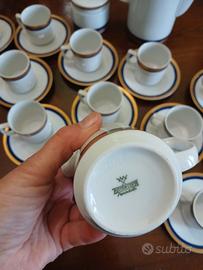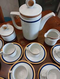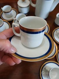 Servizio da 12 in porcellana di Bavaria Rifiniture in oro e blu Completo di caffetteria, lattiera e zuccheriera Molto elegante, mai usato Anni 70/ 80