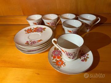 Il servizio da caffè mostrato nell'immagine è un set vintage di tazze e piattini in porcellana della linea "Monopoli Porcellana d'Italia