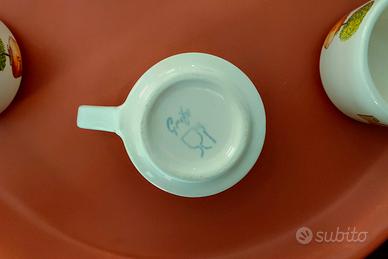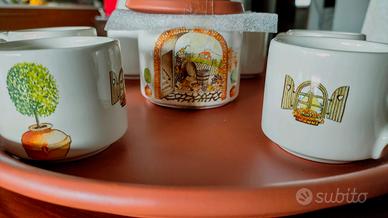 Vendesi pregiato servizio da caffè artigianale in cotto dipinto a mano.