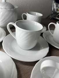 Servizio da caffè o tè in porcellana bianca della marca Tognana. Il design presenta una forma elegante con una delicata decorazione a spirale in rilievo.