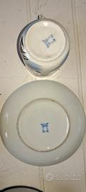 vendo usato in perfette condizioni , marchiato in fine porcellana composto come da foto con sei tazzine abbinate ai piattini e zuccheriera