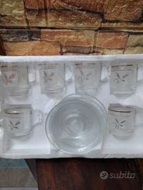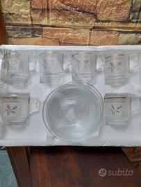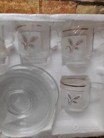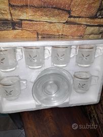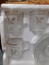 servizio da caffè anni 60/70 mai usato mai aperto 6 piattini e 6 tazzine in vetro von decorazioni floreali dorate tutto integro