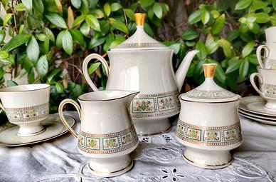 Elegante servizio da caffè Anni '50 per 12 persone in fine porcellana Bavaria Johann Seltmann, composto da 12 tazzine con piattino, caffettiera, zuccheriera e lattiera. Condizioni perfette.