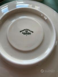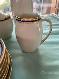 Prezioso servizio da caffè completo da 12 comprensivo di lattiera e zuccheriera e caffettiera in porcellana con doppio bordo dorato e blu - mai usato come nuovo
