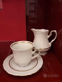 🌿💚🌺🌿 Servizio da caffè Vochenstrauss, Johann Seltmann, Bavaria, Germany. Candida porcellana bianca, molto bella, con un filo oro. È un servizio da caffè per 6 persone, complete di piattini, caffettiera, lattiera e zuccheriera, senza coperchio. Il prezzo ne tiene conto. Condizioni ottime. Euro 45