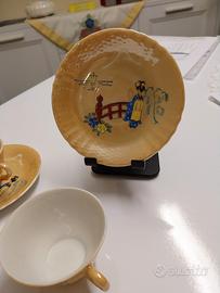 Raro servizio da caffè in porcellana giapponese dipinta a mano. Metà Novecento (anni 50).