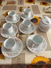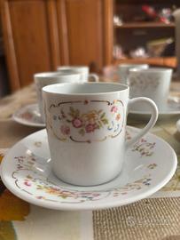 Set da sei tazzine da caffè con zuccheriera in fine ceramica di Limoge e Baviere , mai utilizzata