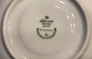"Porcellana originale Schumann – W. Germany, decoro floreale con bordo blu.