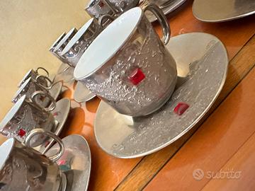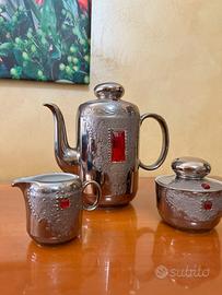 Come da titolo vendo Servizio da Caffè in porcellana Bavaria dipinta in argento con gioiello rosso frontale.