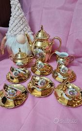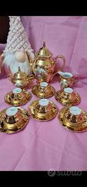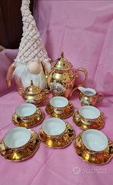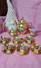 servizio da caffè vintage Bavaria colore bianco oro con decoro Fragonard.