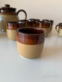 Servizio da caffè vintage in ceramica di Faenza, anni ’70, colore marrone, prodotto in Italia.