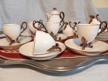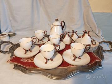 Servizio da Caffè Vintage in Porcellana Bianca e Oro per 9 persone.