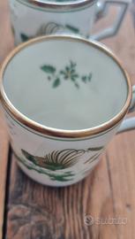 Vendo elegante servizio da caffè vintage in porcellana Richard Ginori, produzione italiana. Composto da: 5 tazzine da caffè 5 piattini coordinati Decoro classico con filetto dorato e motivo verde/oro, molto raffinato.