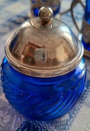 Servizio da caffè vintage in vetro blu e silver plate composto da 6 tazze, 6 cucchiaini e 1 zuccheriera. Ritiro gratuito a Cornaredo.