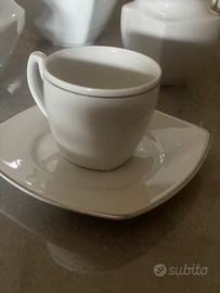 Servizio da caffe x 12 in porcellana Lancetti bianco e argento nuovo mai usato