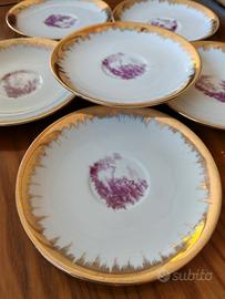 con decorazioni in oro composto da 1 piatto grande con 6 piattini
