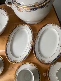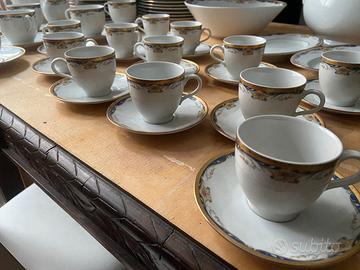 Vendo elegante servizio di piatti in porcellana bianca con bordo decorato blu e oro. Il servizio è composto da: •Piatti piani (circa 12 pezzi) •Piatti fondi (circa 12 pezzi) •Piatti da dessert (circa 12 pezzi) •Tazze da caffè/tè con piattino (circa 12 pezzi) e tazze 6 pezzi •Teiera •Zuccheriera •Lattiera •Zuppiera • Due piccoli vassoi Ideale per famiglie numerose o per occasioni speciali. Condizioni: come nuovo, MAI USATI Vendo per inutilizzo. Prezzo trattabile Ritiro a mano o a carico dell’acquirente per spedizione