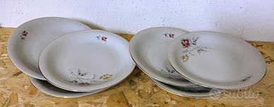 Servizio in ceramica composto da piatto portata e 6 piattini per dolce. Finemente dipinto e profili in oro. Ottimo anche come regalo.