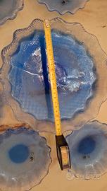 Servizio da dolce in cristallo blu. Vetro soffiato