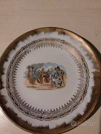 Elegante servizio da dolce Richard Ginori anni '50, rifinito in oro con diversi disegni su ogni piatto, come da foto ha la dicitura G1 sul retro. Misure: piatto grande 25 cm, piatti piccoli 15.5 cm.