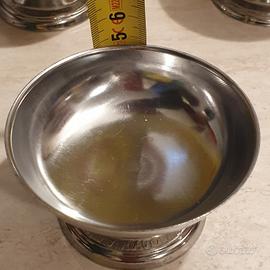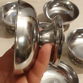 Da eredità, vendo servizio da gelato o macedonia vintage, risalente ai primi anni'60 composto da 6 coppette in metallo / acciaio in condizioni ECCELLENTI Per ulteriori informazioni e dettagli non esitate a contattarmi