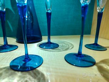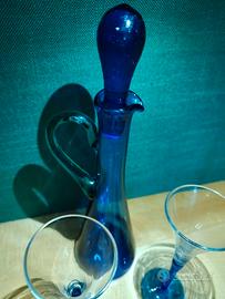 Vendo servizio da liquore vintage completo (stile Empoli/Murano anni '60/'70), caratterizzato da un raffinato design bicolore: vetro trasparente e gambo/dettagli in blu cobalto intenso.